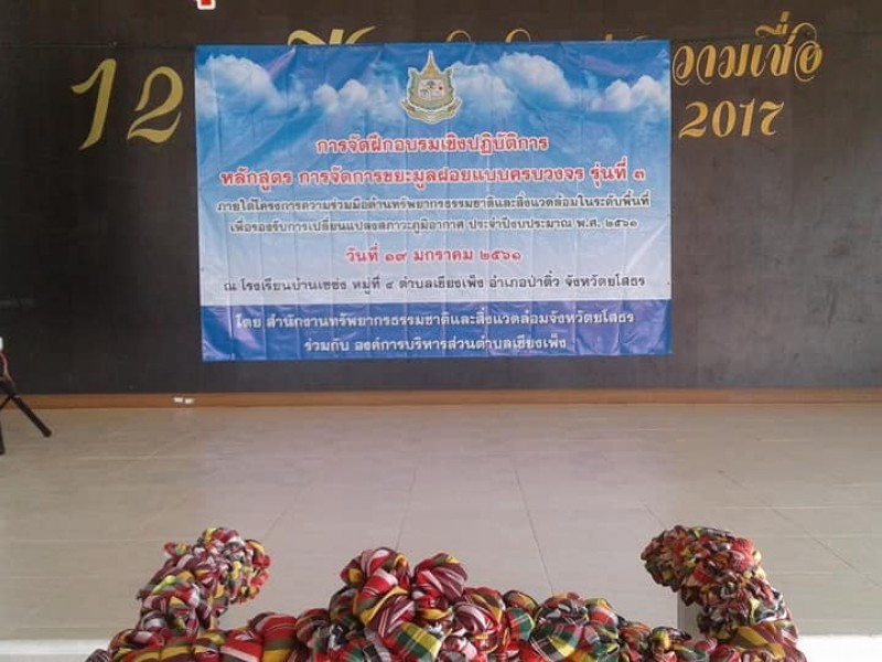 วันที่ 19 มกราคม 2561 องค์การบริหารส่วนตำบลเชียงเพ็ง ร่วมกับสำนักงานทรัพยากรธรรมชาติและสิ่งแวดล้อมจังหวัดยโสธร จัดอบรมโครงการการจัดการขยะแบบครบวงจร และ จัดฝึกอบรมเชิงปฎิบัติการหลักสูตร “การจัดการขยะมูลฝอยแบบครบวงจร” รุ่นที่ 3 ณ.วัดนักบุญยอแซฟบ้านเซซ่ง บ้านเซซ่ง หมู่ที่ 4