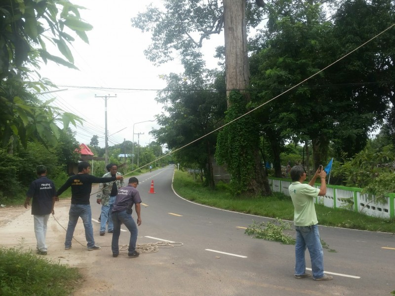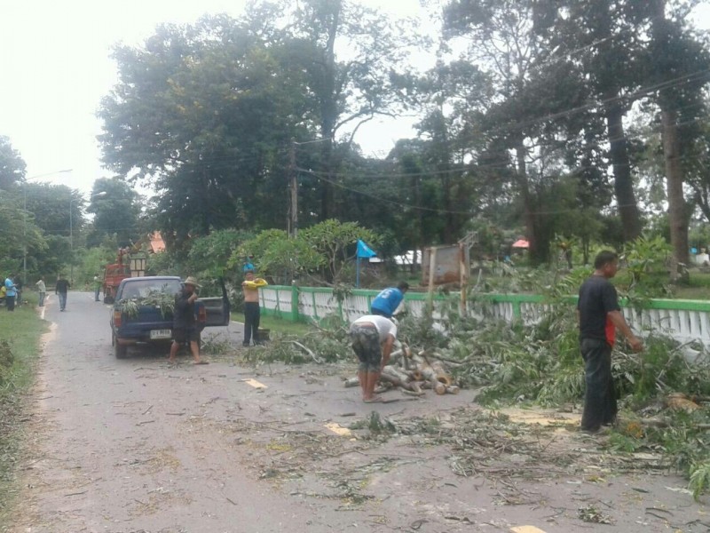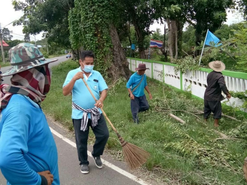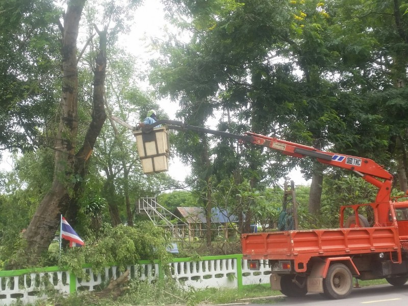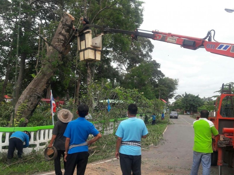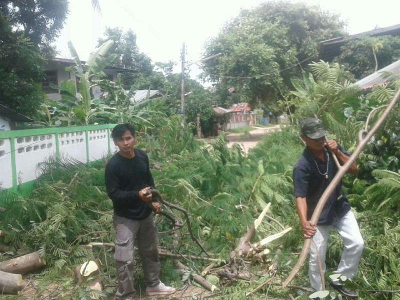 คณะผู้บริหาร เจ้าหน้าที่ ผู้นำชุมชน และประชาชน ร่วมกันตัดกิ่งไม้ ที่อาจจะก่อให้เกิดอันตรายในช่วงฤดูฝน