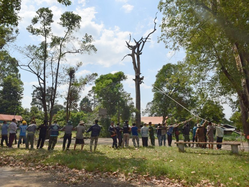 องค์การบริหารส่วนตำบลเชียงเพ็ง ร่วมกับ ปลัดอำเภอป่าติ้ว,ผู้กำกับสถานีตำรวจอำเภอป่าติ้ว, หัวหน้าหน่วยป้องกันรักษาป่าที่ ยส.3(โคกนาโก), ผู้จัดการไฟฟ้าสาขาย่อยป่าติ้ว, ผู้บังคับการกองพันทหารราบที่ 3 กรมทหารราบที่16 (ค่ายบดินเดชา),ผู้อำนวยการทางหลวงชนบทจังหวัดยโสธร, ผู้อำนวยการโรงเรียนชุมชนบ้านเชียงเพ็ง, ผู้อำนวยการสำนักงานทรัพยากรธรรมชาติและสิ่งแวดล้อมจังหวัดยโสธร, หัวหน้าสำนักงานป้องกันและบรรเทาสาธารณภัยจังหวัดยโสธร, หัวหน้าสำนักงานป้องกันและบรรเทาสาธารณภัยจังหวัดยโสธร, สัสดีอำเภอป่าติ้ว, สมาชิกสภาตำบลเชียงเพ็ง ,กำนันตำบลเชียงเพ็ง, ผู้ใหญ่บ้านทุกหมู่บ้าน และประชาชนในพื้นที่ ได้ดำเนินการตัดต้นยางนาที่ยืนต้นตายบริเวณข้างโรงเรียนชุมชนบ้านเชียงเพ็ง เพื่อป้องกันอันตรายที่อาจจะเกิดแก่ประชาชนในพื้นที่
