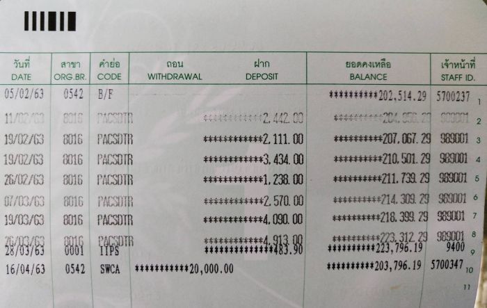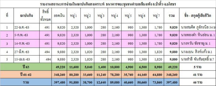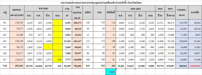 ผลประกอบการธนาคารขยะ ต.เชียงเพ็ง ณ 16.4.63