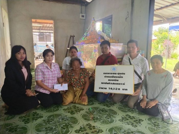 เมื่อวันที่ 16 ตุลาคม 2563 เวลา 10.00 น. ท่านสมจิตร แสงแสน เลขานุการสภา อบต.เชียงเพ็ง นางอรทัย คำสุข รองปลัด อบต.เชียงเพ็ง นางสาวมยุรา ทองจันดี หัวหน้าสำนักปลัด นางสาวฐานะมาศ บุญปัญญา นวก.สาธารณสุขปฏิบัติการ เป็นตัวแทนมอบเงินฌาปาณกิจสงเคราะห์ กองทุนธนาคารขยะชุมชนตำบลเชียงเพ็ง