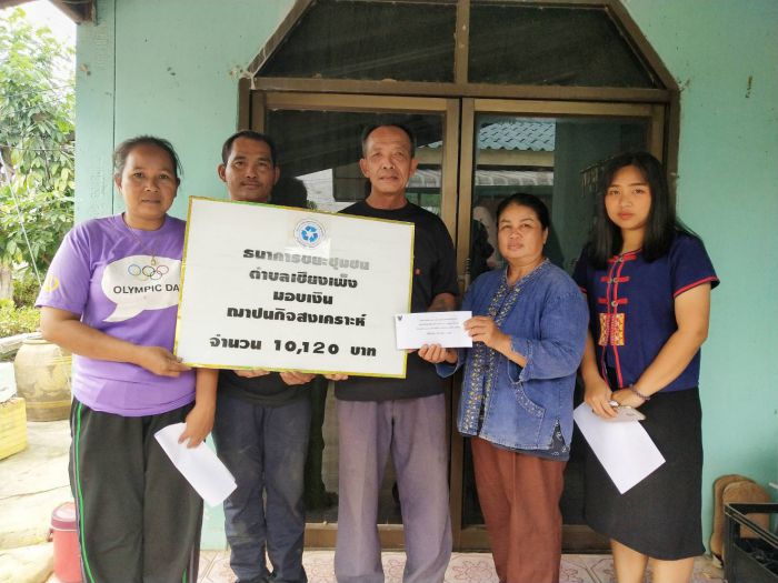 เมื่อวันที่ 20 ตุลาคม 2563 ท่านสมศรี ปั้นทอง ผู้ใหญ่บ้าน หมู่ที่ 4 บ้านเซซ่ง นายสาธร ปั้นทอง และนางสาวฐานะมาศ บุญปัญญา นวก.สาธารณสุขปฏิบัติการ ตัวแทนคณะกรรมการธนาคารขยะชุมชนตำบลเชียงเพ็ง มอบเงินสวัสดิการฌาปนกิจสงเคราะห์ให้กับครอบครัวนายสมัคร สุพร บ้านเลขที่ 124 หมู่ที่ 4 จำนวนเงิน 10120 บาท