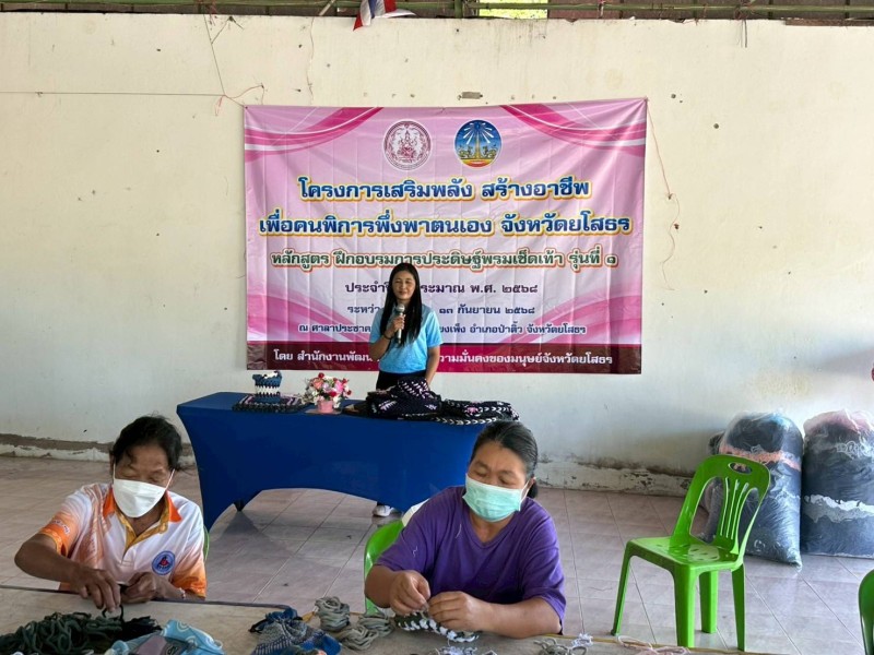 โครงการเสริมพลังสร้างอาชีพเพื่อคนพิการพึ่งพาตนเอง จังหวัดยโสธร หลักสูตร ฝึกอบรมการประดิษฐ์พรมเช็ดเท้า รุ่นที่ 1
