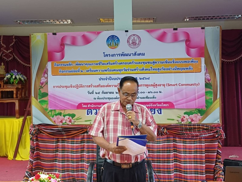 สำนักงานพัฒนาสังคมและความมั่นคงของมนุษย์จังหวัดยโสธร ร่วมกับ องค์การบริหารส่วนตำบลเชียงเพ็ง จัดโครงการประชุมเชิงปฏิบัติการสร้างเสริมความรู้ให้เครือข่ายในการดูแลผู้สูงอายุ (Smart Community) ในวันที่ 25 กันยายน 2568 ณ องค์การบริหารส่วนตำบลเชียงเพ็ง โดยมีกลุ่มเป้าหมาย จำนวน 50 คน