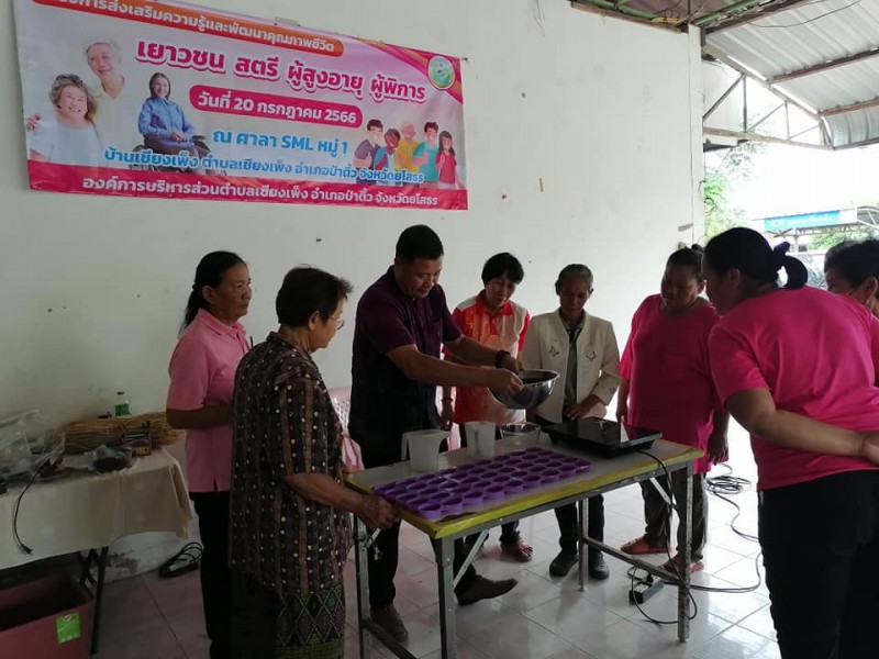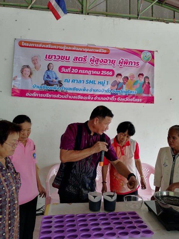 โครงการส่งเสริมความรู้และพัฒนาคุณภาพชีวิต เยาวชน สตรี ผู้สูงอายุ ผู้พิการ ณ ศาลา SML บ้านเชียงเพ็ง หมู่ที่ 1 ตำบลเชียงเพ็ง อำเภอป่าติ้ว จังหวัดยโสธร